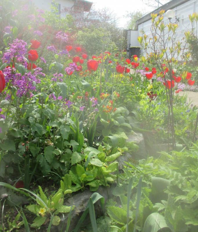 Zur Feier des Tages - die Wolken verschwinden und es hat schon 14°C - auch von mir mal ein Gartenbild von heute (im Gegenlicht) :).