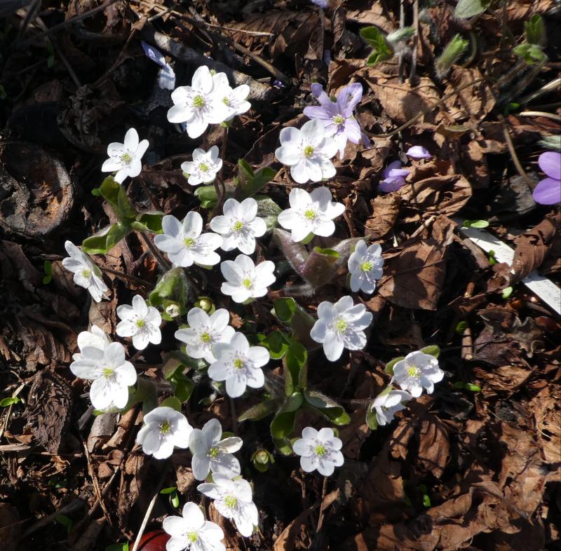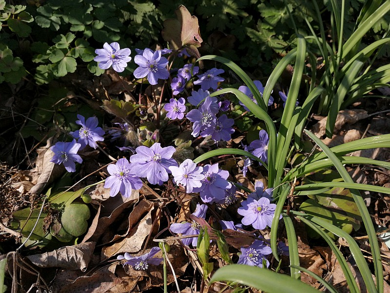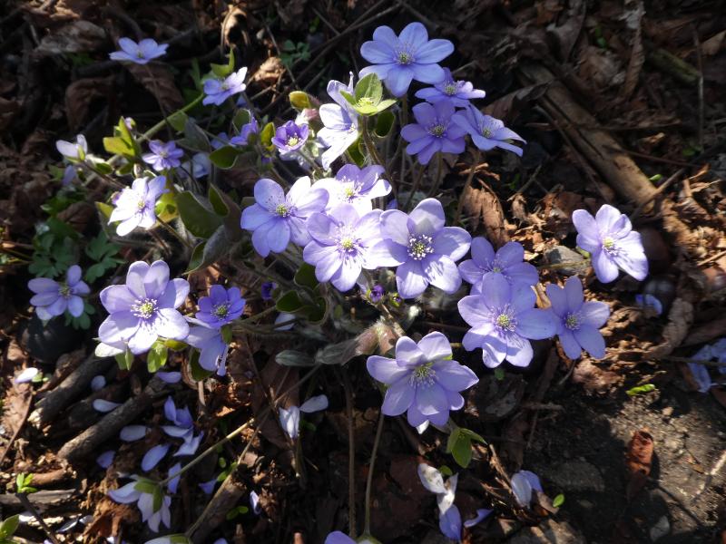 Bis auf Axels gefülltes Hepatica, an dem ich heute 22(!) Blüten zählte, sind meine zumeist einfache Varianten in Blau, Rosa und Weiß. Sie haben sich z.T. vor Ort ausgesät, teilweise sind es Sämlinge von A. Händel ('Fliederkinder').