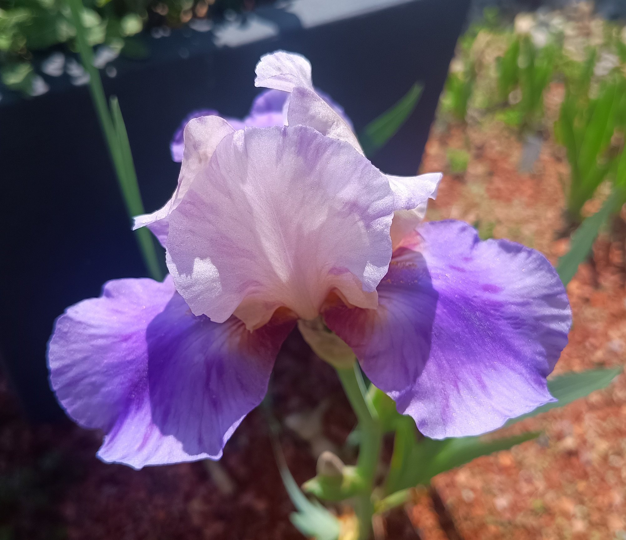 Seit zwei Tagen blüht hier (Nähe Magdeburg) eine Iris barbata-nana, die ich nicht anhand der einschlägigen Online-Kataloge bestimmen konnte. Hat jemand eine Idee? Habe auch vermutet, es wäre vielleicht eine trockenheitsgeschädigte Iris barbata-intermedia, aber alle Blüten sind maximal 30 cm hoch. 'Gingerbread Man' ist es wohl nicht, da bei unserer ein klarer Unterschied des Doms (gelblich) und der Hängeblätter (rotbraun-violett) besteht. Sie existiert bei uns wohl schon seit mehr als zehn Jahren, die Quelle ist nicht bekannt. Auffällig finde ich besonders den blauen Bart.