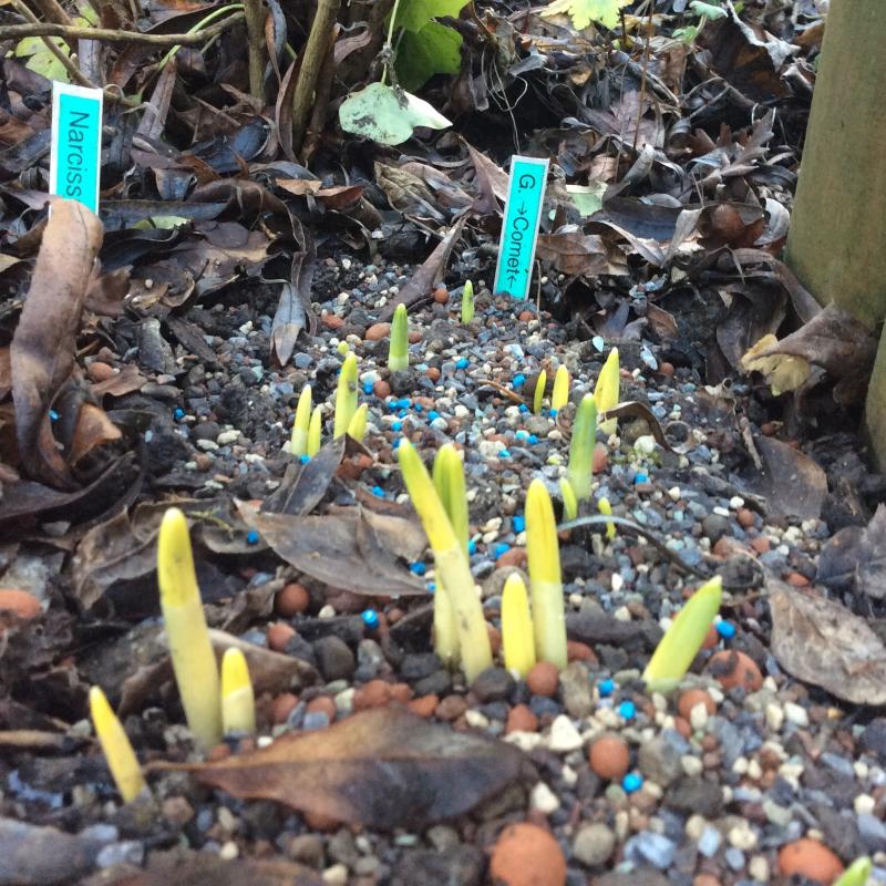 Das Bild ich vom Vorjahr. Sieht doch ähnlich aus? Da lag dich Laub drauf. Die sind gewachsen, haben sich umgefärbt und haben geblüht.