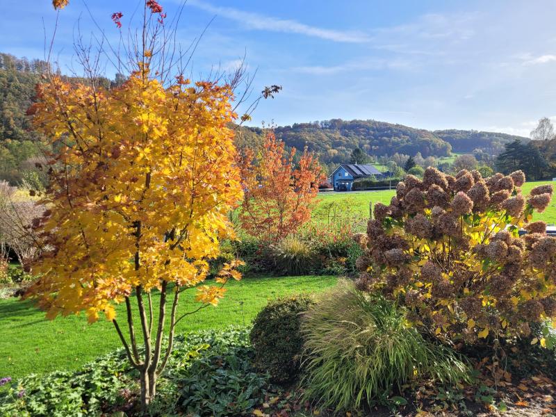 Genauso geht es mir auch. Erst überhaupt keine Herbstfärbung, aber jetzt eine Farbenpracht! Trotz des vielen Regens! Eine sehr schöne Ahornsammlung hast du, Andreas! Aber am meisten mag ich deine blaue Tür am Gartenhaus! Was für ein Blau!