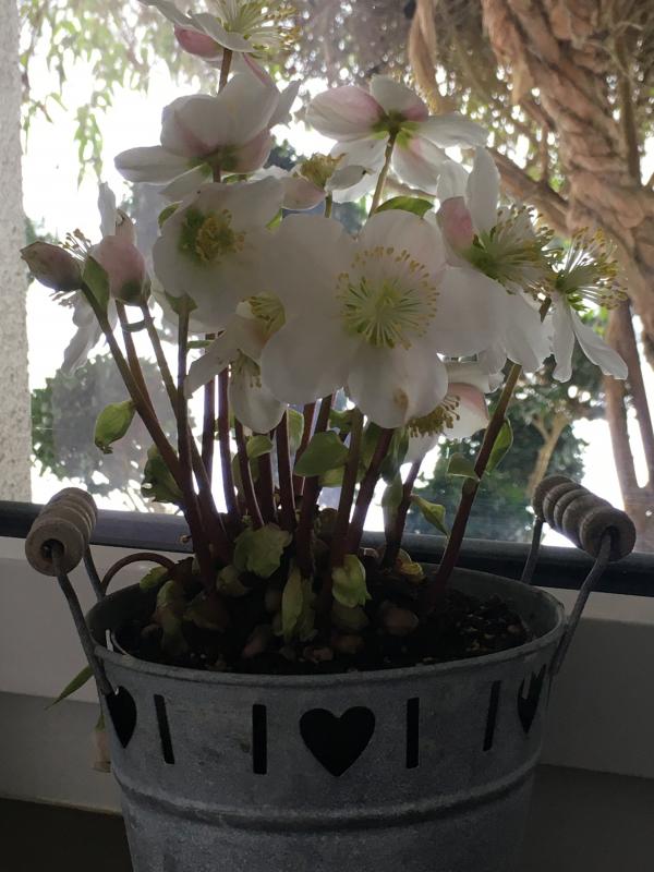 Ich kaufe meine Christrosen auch in der Blüte. Man will ja sehen, was man hat bei diesem Formenreichtum. Letzten Winter waren es Ice 'n Roses Early Red, Chery's Shine und Silver Dollar (der kam gleich in's Beet).