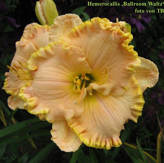 Nun bin ich baff. Ich habe sie als Bonus unter diesem Namen bekommen??????Ballroom Waltz: Beschreibung bei tinkers 'pale cream pink blend with bright gold eye and deep pink edge above green throat'