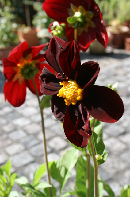 Black Jack hat schöne dunkle Blüten und dunkles Laub....und essbare Knollen:)