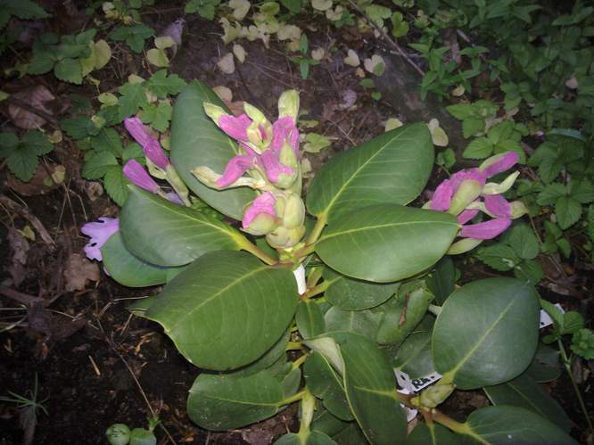 @chris: die Torreya nucifera habe ich vor 21 Jahren gepflanzt und ist ca. 1,50 m hoch.Wächst schief,da offentsichtlich Steckling eines Seitentriebes,aber im Japangarten darf ja alles schief wachsen.Habe außerdem noch Torreya californica(gepflanzt 1989,ca3m),Torreya grandis(gepflanzt 1989 und eine zweite 1990,beide ca,1,50 m hoch und sehr langsam wachsend),Torreya taxifolia(gepflanzt 1991 und 2m hoch).Anbei R.formosanumRV 74006