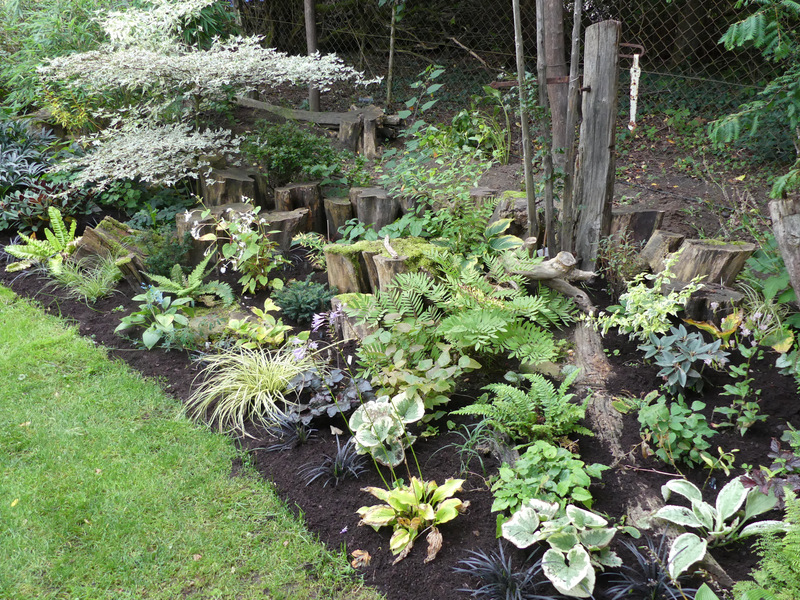 Das Stubbenbeet hat sich ganz gut entwickelt. Kürzlich habe ich es mit Laubkompost gemulcht, danach sah es natürlich besonders ordentlich aus. ;D Einige Bilder...