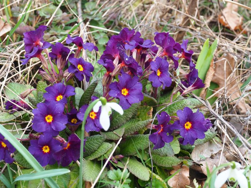 Beim nächsten Sonnenschein geh' ich mal gucken, ob die Primeln sich auch schon regen. Hatten die nicht ungeteilte, leicht am Rande gewellt Blätter ? Dann gibt's noch Photos mit Blüten.