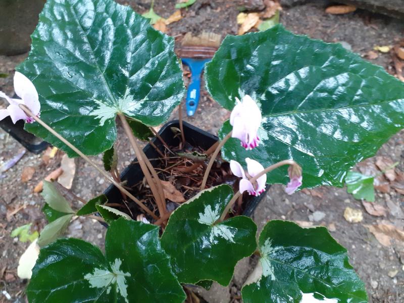 Die Erfahrung mache ich auch gerade in den letztes Jahr im Trog gepflanzten Cyclamen. Ein letztes Jahr fast dreieckiges Blatt bekommt jetzt Zacken. Werde nach dem Urlaub mal vorher/nachher Bilder zeigen, dann sind hoffentlich ausreichend Blätter erschienen. Und deine Cyclamen in der Hecke waren sowieso besonders schön.