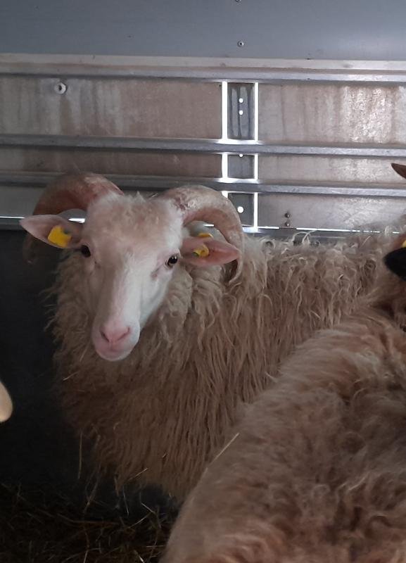 Aber die halten zusammen. Wir haben eine Bock für ehemalige Käufer von uns an Bord. Mit unserem neuen Helge. Ein Bocklamm aus dem gleichen Stall. Weswegen da hinten trotz der Zibben Ruhe herrscht. Die Schnucken sind streng saisonal. Man sieht auch, dass sie noch keine rosa Nasen haben.