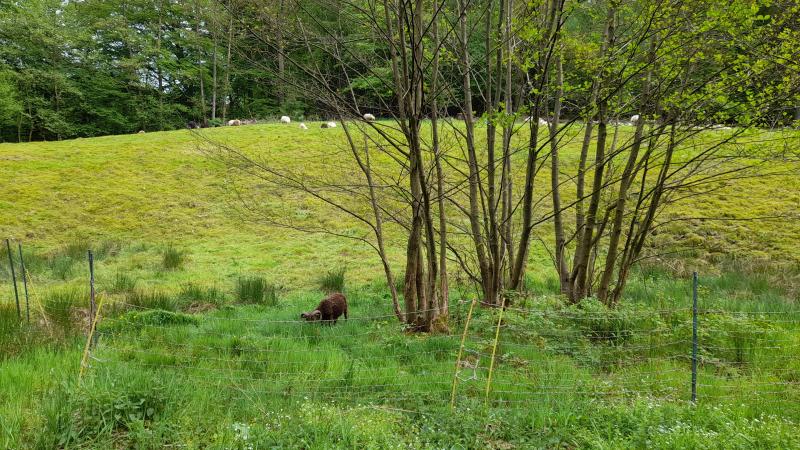 Der benachbarte Rinderhalter war auch nicht zu beneiden. Dem seine Tiere waren draußen. Und da haben welche den großen Aufstand geprobt, sind an unserem Netz vorbei gequetscht oben raus und ins Getreidefeld. Wo sie es toll fanden :-X