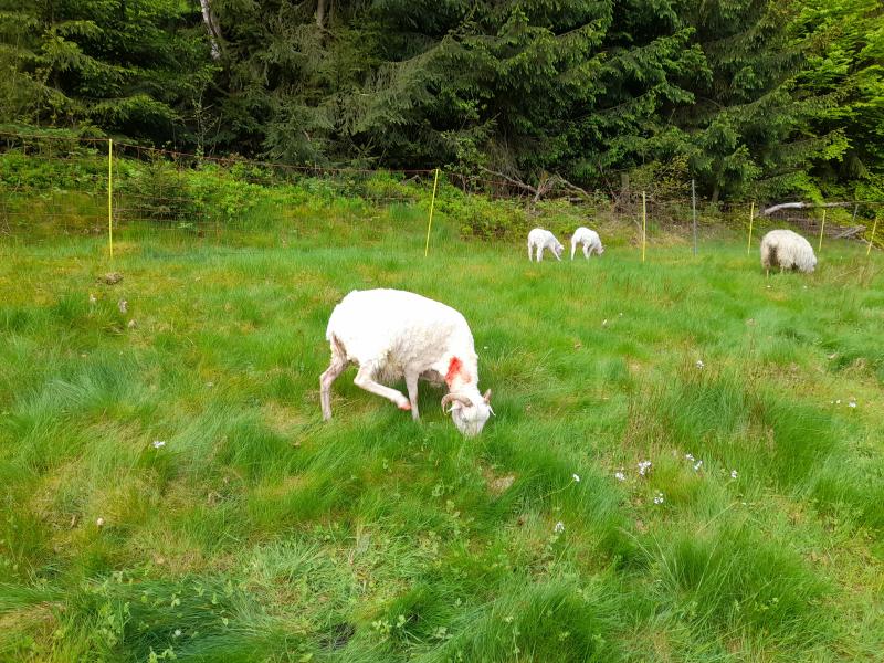 Ein Schaf habe ich noch geschafft. Aber auch hier gab es einen Zwischenfall ::) während ich Palida geschoren habe knusperte eine am Handy, eine am Schlüsselbund und eine an der Klauenschere. Und von Letzerer hat sich eine Feder gelöst, die nicht mehr auffindbar war. Ich hoffe nicht, dass die gefressen wurde :-X kannst nur mit Tresor auf die Weide ::)