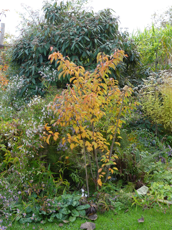 Vorne rechts beginnt Stewartia gemmata zu färben.
