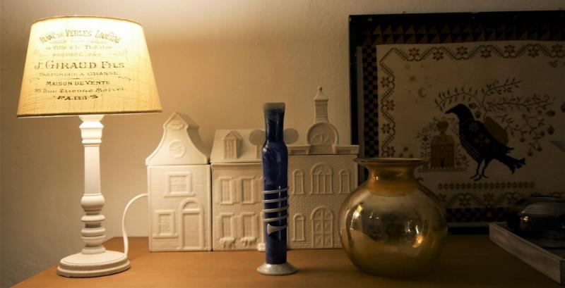 Neulich kaufte ich eine goldfarbene Glasvase. Sieht in Natura mehr wie ein Nachtgeschirr aus. Die andere blaue Vase dagegen habe ich schon sehr lange. In einer Stadt mit römischen Ausgrabungen gekauft. Welche weiß ich nicht mehr. Xanten oder Köln. Dort wurden Nachahmungen nach antikem Vorbild verkauft. Die weißen Ohren sagen mir nicht zu. Deshalb immer in der Schublade.