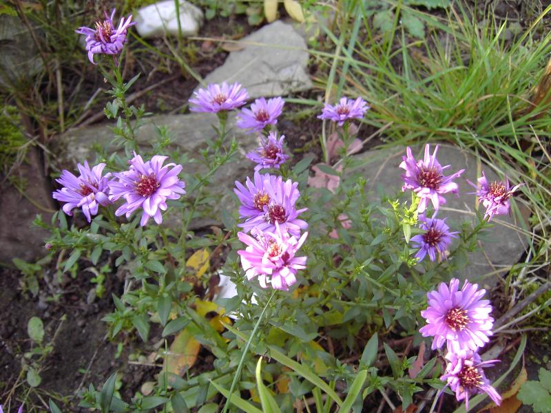 Die noch kleine Aster dumosus 'Rosenwichtel' hat die beste Zeit schon hinter sich..