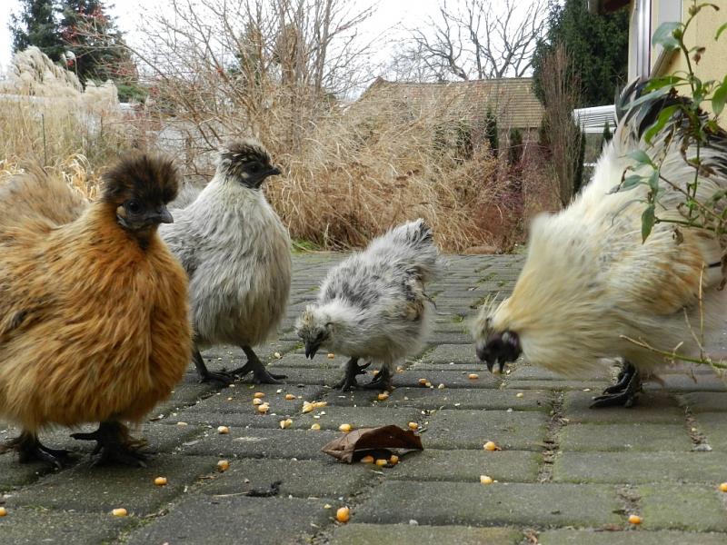 Mal ein update von meinen Zwergseidenhühner. Bei dem Nachzügler hoffe ich immer noch, dass es eine Henne wird. Relativ schmaler Kamm, jede Menge Federn auf dem Kopf.