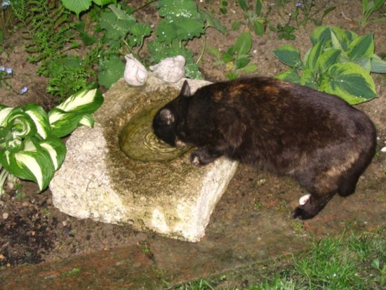 ?? Senja hat in den warmen Monaten die Angewohnheit grundsätzlich im Garten die Wasserstellen aufzusuchen ( Sitzwanne, Vogeltränke, Gartenteich, Brunnen, Kübeluntersetzer, usw.) Jetzt im Winter habe ich das Problem, dass sie von dem Wasser das ich ihr hinstelle níchts mag