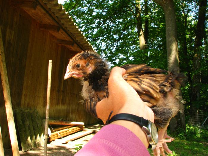die anderen sind alle quietschfidel. entweder was falsches aufgepickt oder genetisch bedingt anfällig gegen etwas, wogegen die anderen offenbar robuster sind.ich klopf auf holz, dass die anderen weiterhin gesund bleibenjetzt hab ich nurmehr zwei hahnenküken - der chef hat inzwischen einen namen: maxwell
