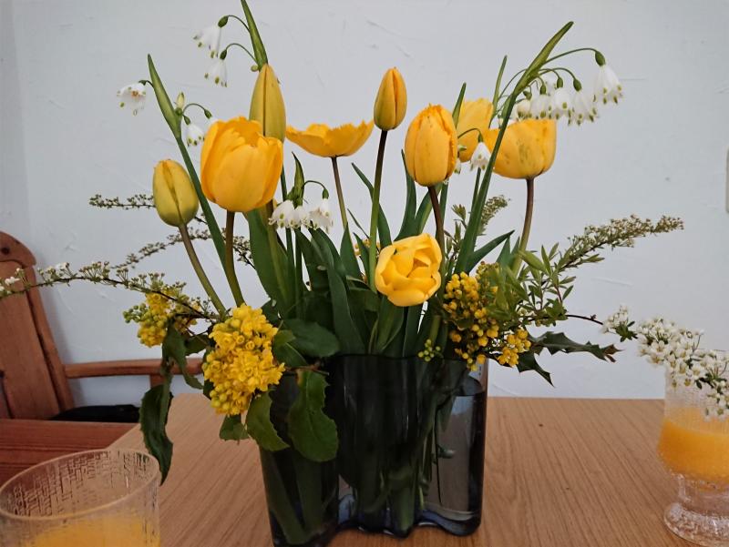 Ein kleiner Frühlingsgruß. Zwar nicht sehr haltbar, aber bei diesem useligen Wetter eine Freude im Haus.