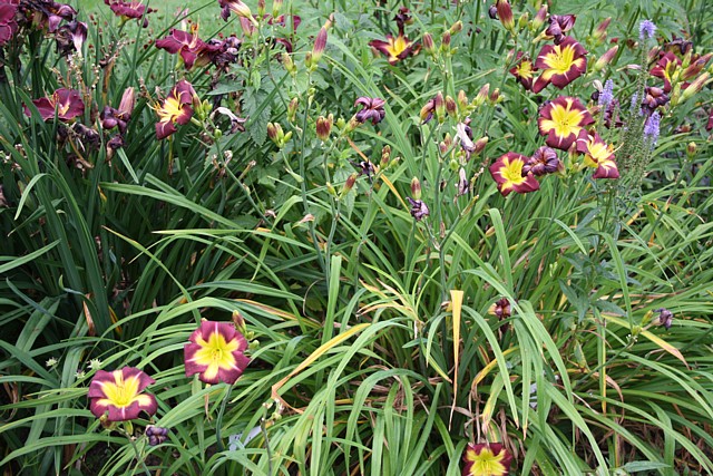 Oh, die gefällt mir!Trotz heftiger Regenschauer und Gewitter öffneten einige Sorten heute recht ordentlich.Eine ältere (geerbte Sorte) aus dem elterlichen Garten 'Another Night' (Sellers 2000)