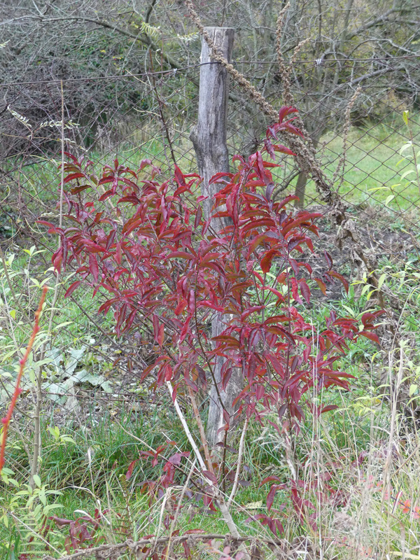 Euonymus hamiltonianus 'Indian Summer' ist schon lange voll ausgefärbt und weigert sich trotzdem noch, sein Laub abzuwerfen.