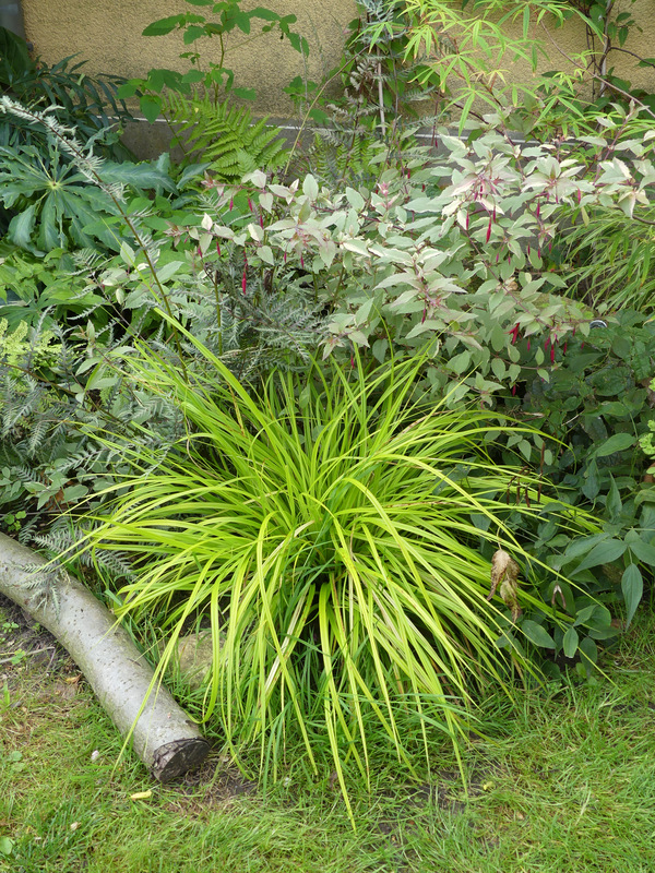 @Hausgeist: So ein paar Aufpasser für die Gartengeräte sind womöglich nicht verkehrt, wenngleich ich nicht hoffe, dass bei Euch dubiose Gestalten durch die Gärten streifen und hier und da etwas mitgehen lassen. Carex 'Everillo' sieht zusammen mit den filigranen Farnwedeln und der üppigen Fuchsie wunderbar aus. Für künstlichen Regen muss man hier wahrlich nicht sorgen, es kommt mehr als genug von oben... ::)