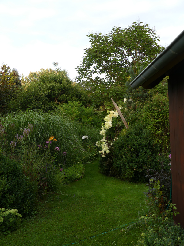 Ein paar Fotos habe ich auch noch, und auch hier ist der Garten zur Zeit ziemlich bunt. Manche Stauden blühen schon ziemlich lange, wie z. B. die Montbretien und Margeriten, denen scheint der Regen ganz gut zu gefallen. Die Sonnenhüte sind dieses Jahr ziemlich spät dran, kein Wunder, Sonne war bisher auch eher Mangelware.