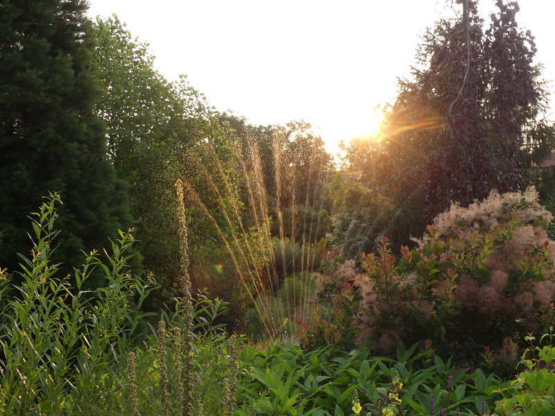 Zum Schluss noch zwei Bilder aus dem "Waldgarten" unter der Tanne, ich staune jedes Mal, wie üppig die Pflanzen hier geworden sind - das ist wohl einzig den reichlichen Niederschlägen zu verdanken. Sehr schön ist das Schattenspiel der tiefstehenden Nachmittagssonne (wenn sie denn einmal scheint), und auch bei mir leuchtet Carex 'Everillo' seit diesem Jahr fast neongrün aus dem Schatten heraus. Nur einen Schritt vom Stamm der Fichte entfernt ist die Vegetation hier noch etwas schütter, aber da kommt halt wirklich nicht viel Regen hin. Dieses Jahr gedeiht aber alles ohne jegliche Bewässerung. :)