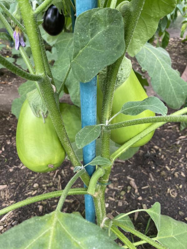 Bisher ein sehr mieses Jahr für Freilandauberginen im Beet. Etwas besser, wenn auch verzögert die im Topf im Freiland. Im Gewächshaus gut, da werden sie aber riesig, da kann man schon seit ein paar Tagen ernten. Bekamen sehr viel Grün und Riesenblätter wie eine Lulo. Ärgerlich auch, dass trotz des kühlfeuchten Wetters trotzdem Spinnmilben zuschlagen. So richtig schönes gibts noch nicht zu berichten.