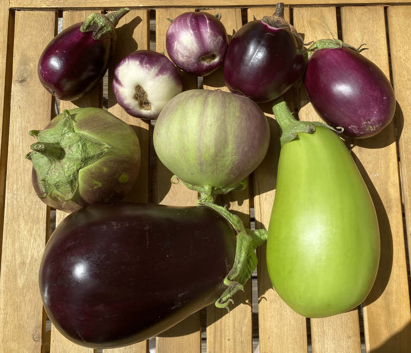 du kannst Auberginen ernten, wann du willst. Nur irgendwann haben sie mehr und festere Kerne, und spätestens, wenn die Schale gelb und hart wird, schmecken sie auch nicht mehr.