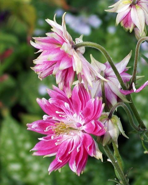 Und vorläufig zum Schluss noch zwei ulkige Exemplare von der Firma Kiepenkerl namens "Clementine Red" bzw. "Clementine Blue", die ich in meiner Gärtnerei fand; die sehen kaum noch wie Akeleien aus mit ihren nach oben zeigenden, gefüllten Blüten und dem kurzen, steifen Wuchs. Aber ich finde sie einfach interessant, mal sehen, ob sie Lust haben mitzumendeln.
