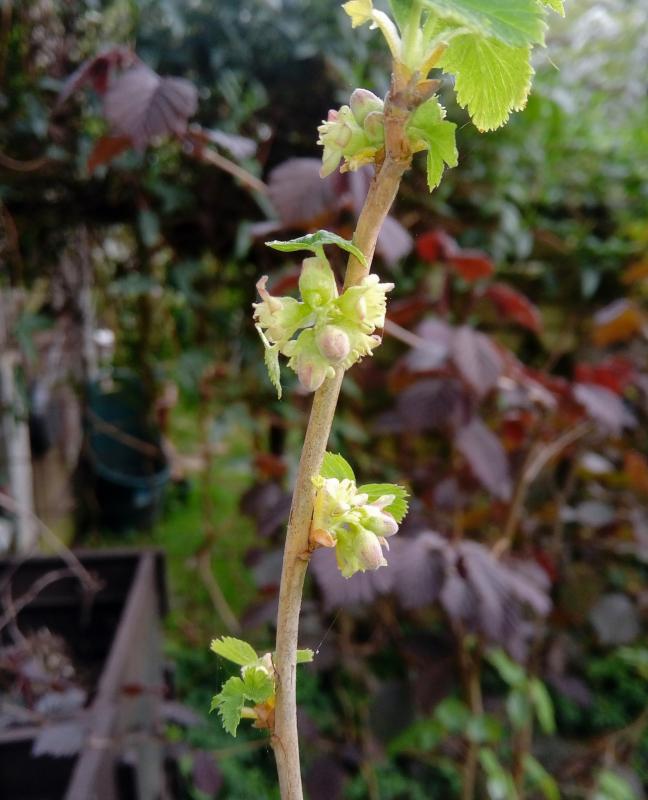 Es kommt nicht immer auf die Länge an :-X Die schwarze Johannisbeere mit den kürzesten Trauben blühen. Wie süß!