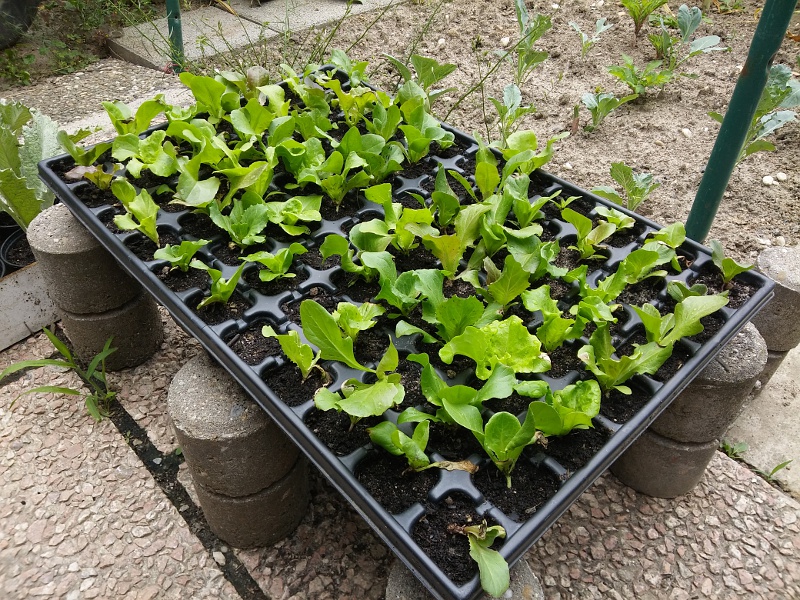 Die Salatpflanzen von der Platte vom letzten Beitrag sind mittlerweile angewachsen. Die Mischung von Sativa Rheinau ist sehr variabel,