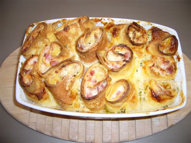 zuvor gab es:BlattsalatOmelette mit Schinken gefüllt und gratiniert