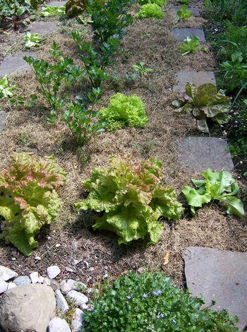 Hier noch der vordere Teil vom Beet.Da stehen noch verschiedene Salate. Ein Teil der abgeernteten Salatfläche wird dann mich gelber Bete bepflanzt