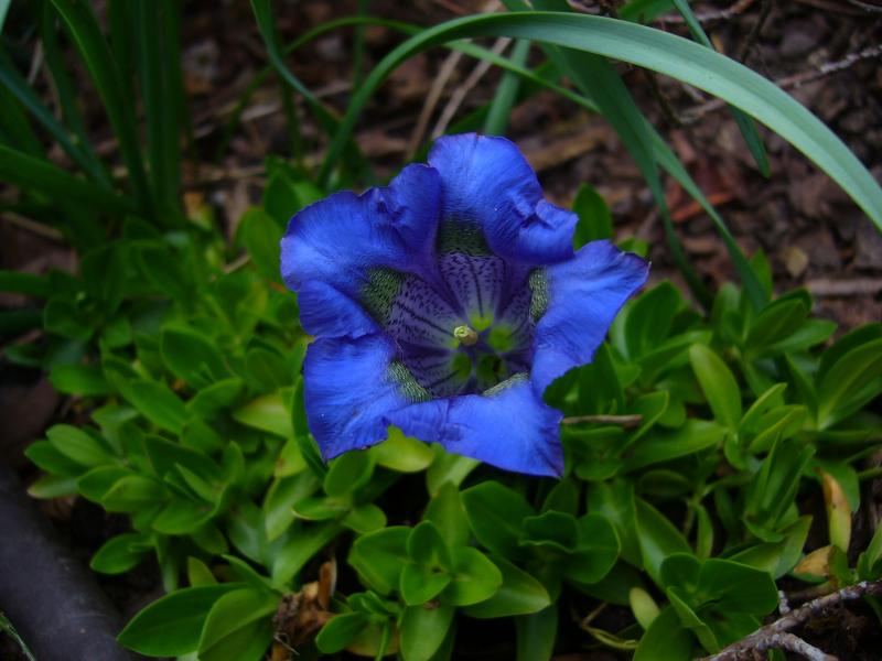Ich habe heute mal eine Nahaufnahme vom Kochsche Enzian (Gentiana acaulis) gemacht. Leider ist die Blüte noch nicht geöffnet um die hellen Flecken am Blütengrund zu sehen. Die Kelchbuchten sind abgerundet.