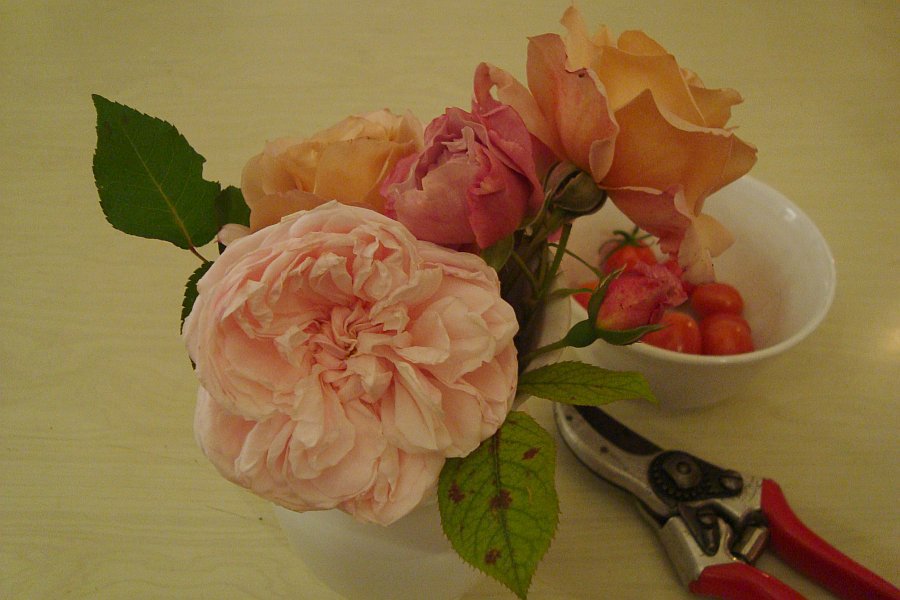 Ich habe ein paar Rosen und Kräuter geschnitten (für GG).