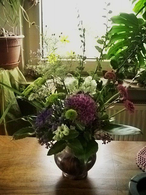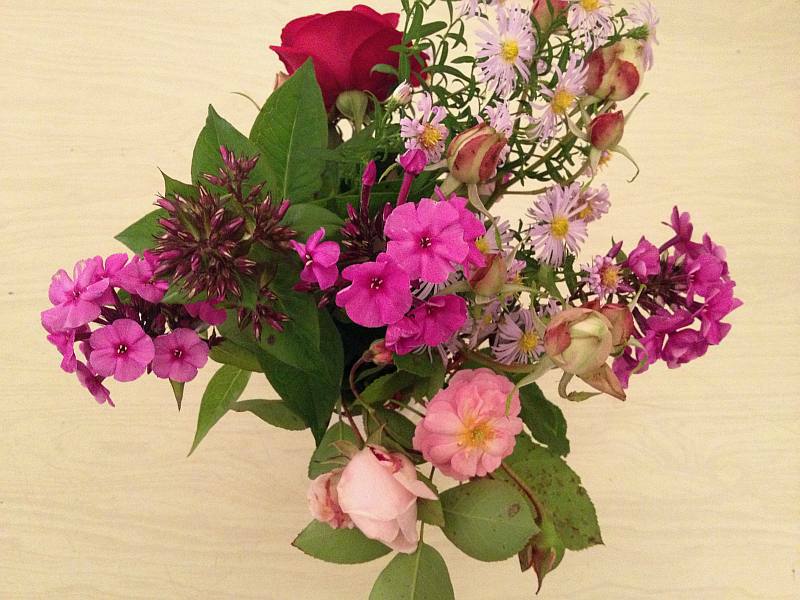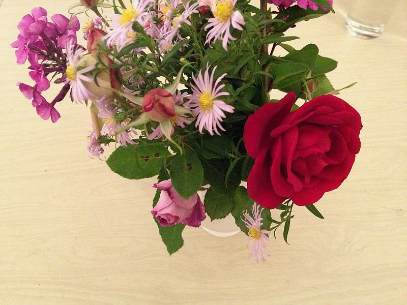 da jetzt der erste frost anstehen soll, habe ich ein paar letzte blüten von rosen, phloxen und aster und für ein sträußchen geschnitten - für gg und mich.