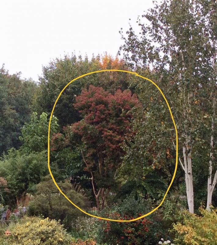Perückenstrauch finde ich auch eine attraktive Idee, unserer mit dunklem Laub färbt sich im Herbst in ein schönes Rot. Höher als 3m ist er aber nicht, dafür sehr schnittverträglich bzw. kann man ihn dadurch auch dichter werden lassen.
