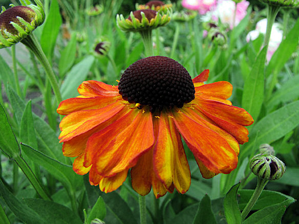 Helenium Luc mit der ersten Blüte, ein Dauerblüher bis zum Herbst.