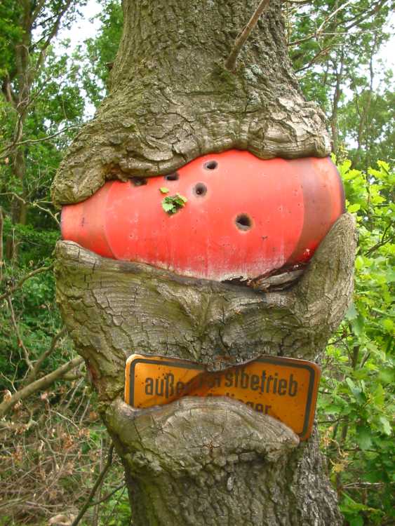 ! Ich hab auch Muskatellersalbei angesät, aber die sind zweijährig, oder, Natura? Ich rangier schon hin und her, sie sollen ja auch groß werden, hoffentlich kommen sie im Staudengewirr nicht unter die Räder, denn noch sind sie so klein...Für mich ein echter Star das Pflänzchen (Nessel, Birke ?) oder was auch immer das ist, was sich da so fotogen im Einschussloch angesiedelt hat. Das Bild ist von Pfingsten, ich kann jetzt erst wieder Bilder einstellen, wegen Winzigweich-Problemen.