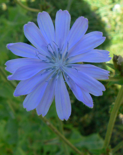 Mein Star des Tages ist heut die Wegwarte. Sie verspricht nun für lange Zeit jeden Morgen blaue Blumen. Leider wird sie bald der Sichel zum Opfer fallen müssen, weil die Wiese durchgemäht werden soll. Aber ich kenne sie: sie wird wieder kommen, noch dieses Jahr. Ich habe ihr versprochen, sie oder eine ihrer Schwestern in ein Staudenbeet umzusiedeln. Sie hat es verdient.