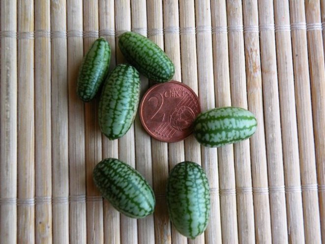 Das siehste mal, ich mag die Kiwanos nicht, blöde Stachelfrucht, man kann sich daran ganz gemein stechen.Und die Früchte habe dermaßen viele Kerne, eine Menge Arbeit sie von den Samen zu befreien für ein wenig Glibbermasse.Die Melothria landet bei mir in Rädchen geschnitten in den Salat oder wird zusammen mit den Gurken eingekocht.