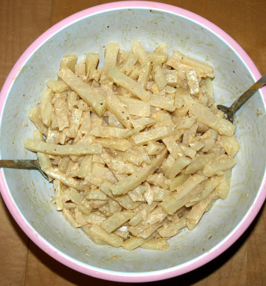 heute - und morgen - und übermorgen -eine riesen Schüssel gekochten Kohlrabisalat von einem einzigen Riesenschmelz -reicht bestimmt für 3 Tage