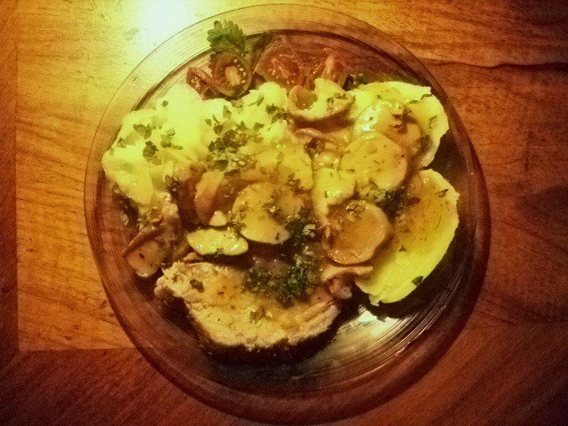 gestern abend gab es schweinebraten mit steinpilzen und spitzkohl, heut nochmal.