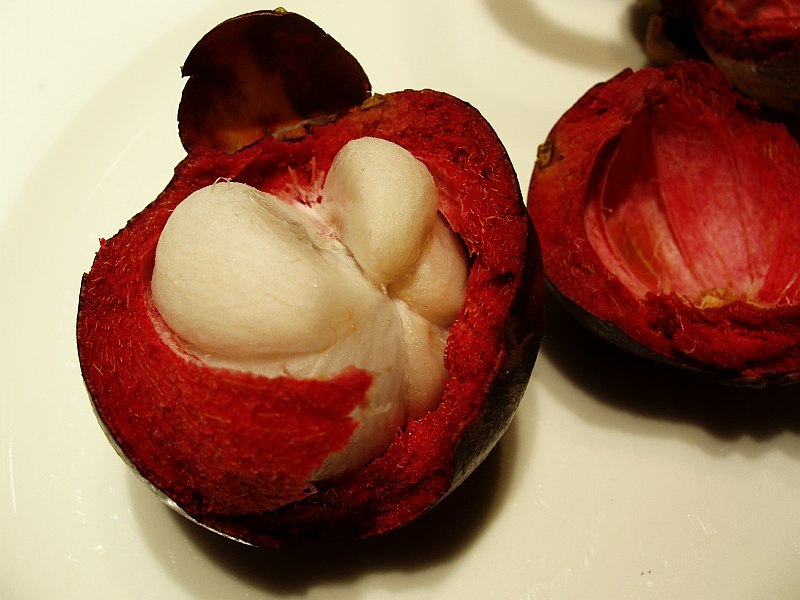 und der nachtisch war eine überraschung: mangostanen! :Ddie schmecken nach rhabarber, aber ohne pelz auf den zähnen...