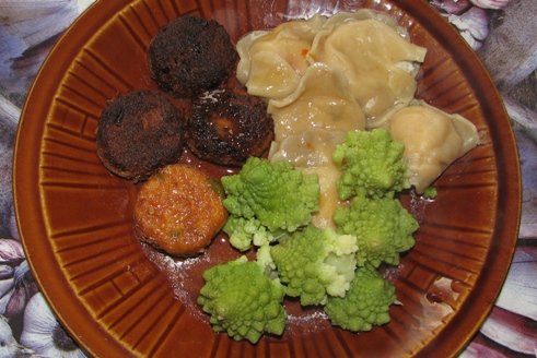 eben grade gab es tofu-bratlinge (fertigprodukt), teigtaschen (fertigprodukt) und romanesco: