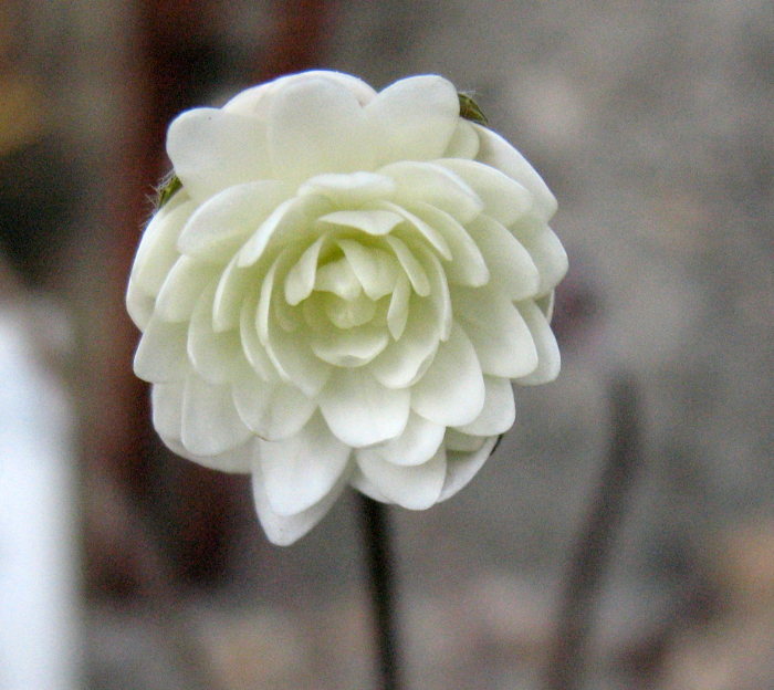 Das erste gefüllte Leberblümchen blüht. Ist noch ein kleines Pflänzchen mit nur 3 Blüten.