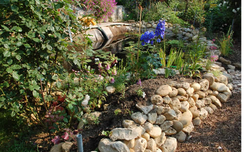 du könntest den aushub oder einen teil davon für einen bachlauf mit wasserfall verwenden.