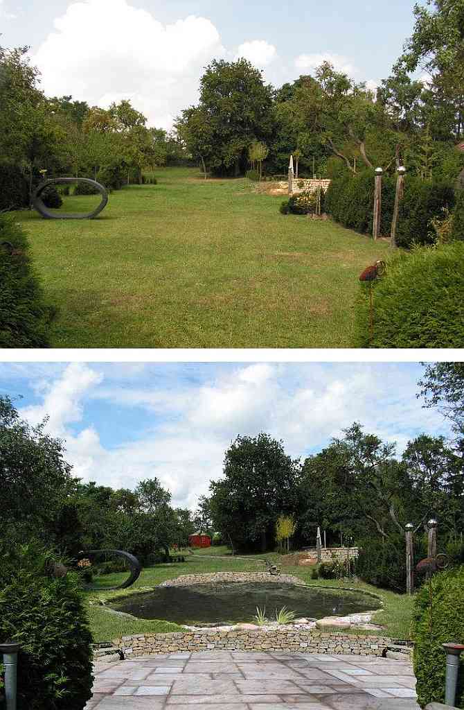 Simulation mit zukünftigem Teich, Pavillon, Terrasse, Bachlauf..: