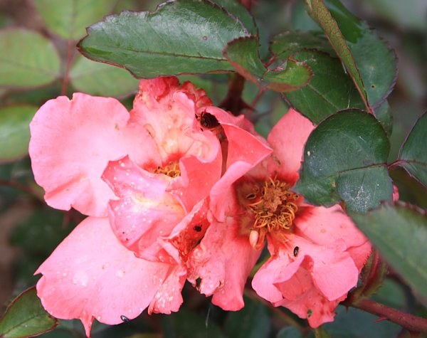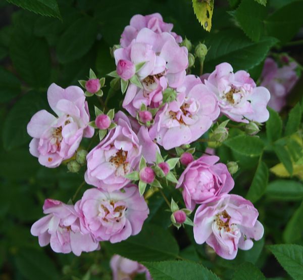 Und eine der wenigen blühenden ( und damit sehr winterharten...) Rambler in diesem Jahr - ein rosa Sport von Bobby James.Sorry, Bild ist zu lila und etwas unscharf - aber es war schon fast dunkel und ich wollte sie nicht wecken durchs Anblitzen ;) .